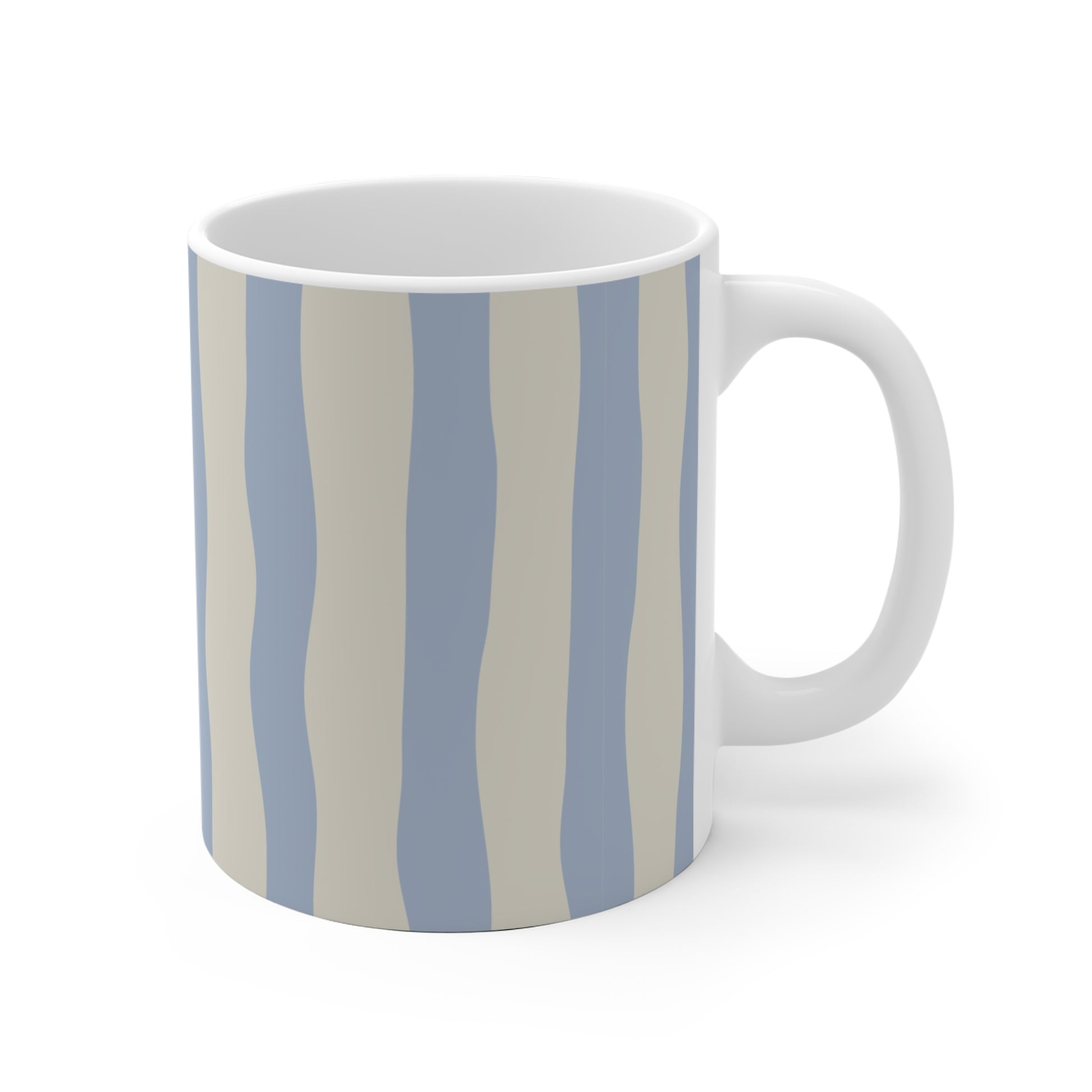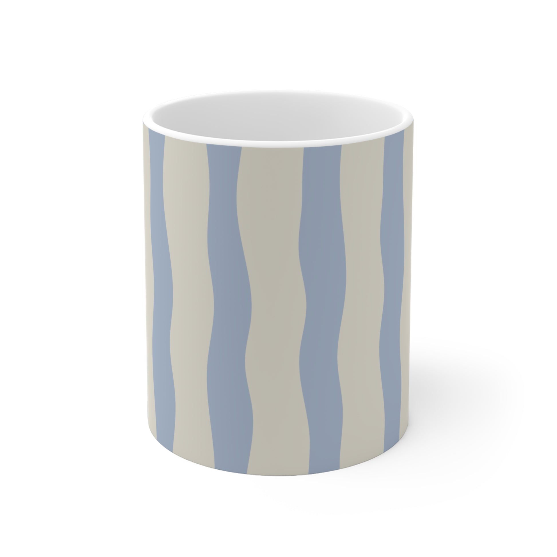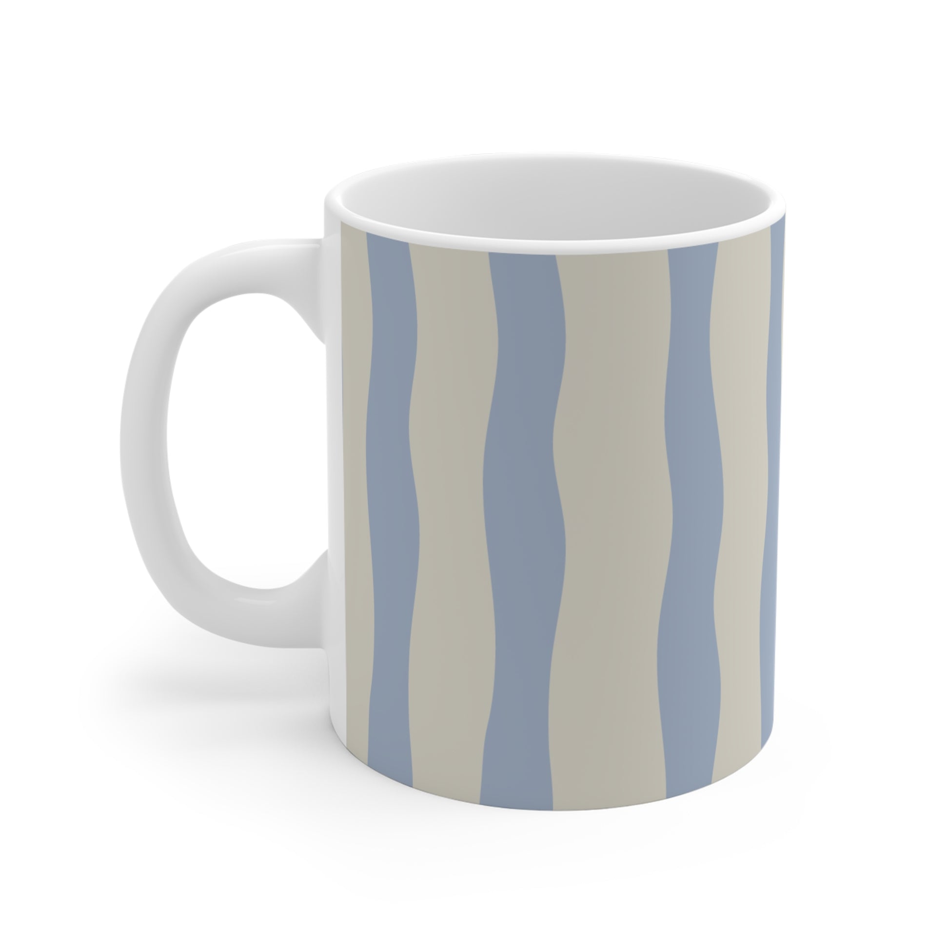 Caneca de cerâmica (330 ml) lembrando as ondas do mar. Com uma pega grande em formato C para um uso confortável. Perfeita para a sua bebida favorita.